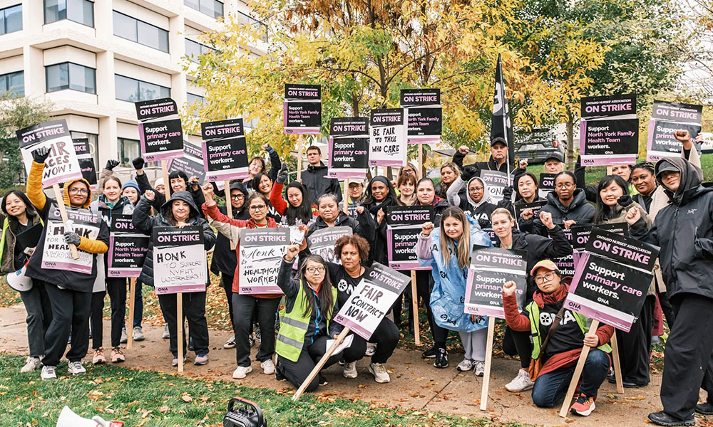 Primary care workers at North York Family Health Team (NYFHT) are on strike, fighting for their first-ever collective agreement so that they can continue providing the care our community needs. They provide comprehensive care for 95,000+ patients at all stages of life, from mental and physical health to chronic disease management.