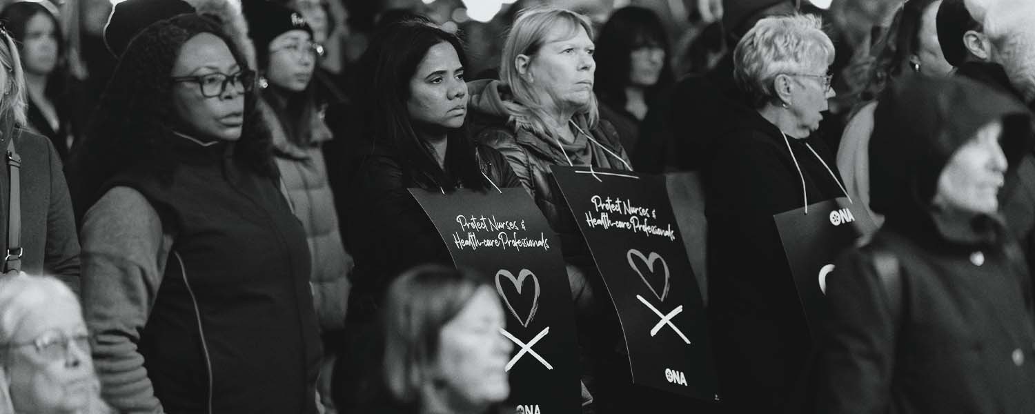 Hundreds of ONA members and allies held a moving and sombre vigil on Tuesday evening to honour those who have been impacted by violence. “Women continue to face high rates of gender-based and intimate partner violence. At work and at home, we are blamed and shamed for the violent actions of others. Enough is enough,” said ONA President Erin Ariss.
